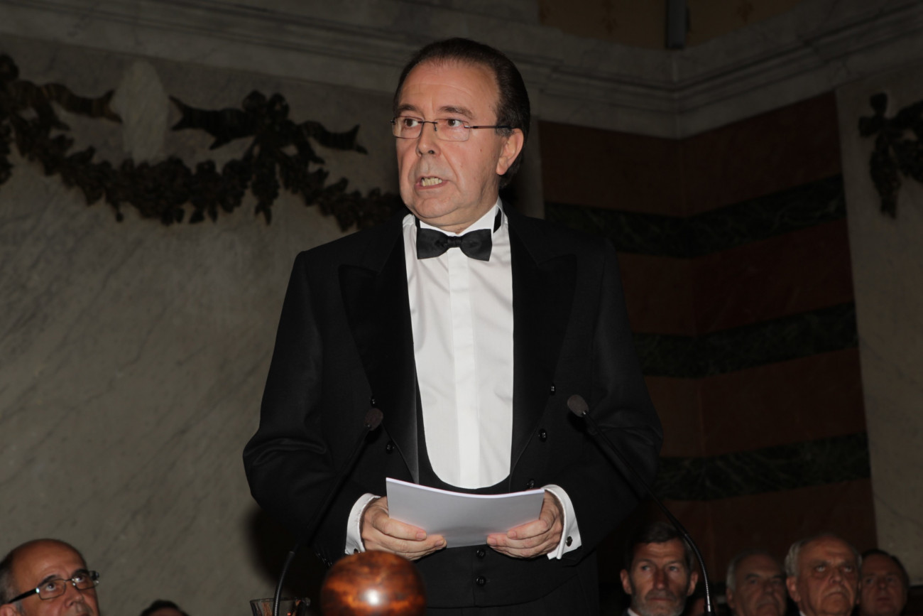 El 17 de octubre de 2014 pronunció un discurso en la sesión conmemorativa del III Centenario, presidida por los reyes, en la que se presentó oficialmente la 23.ª edición del Diccionario de la lengua española.