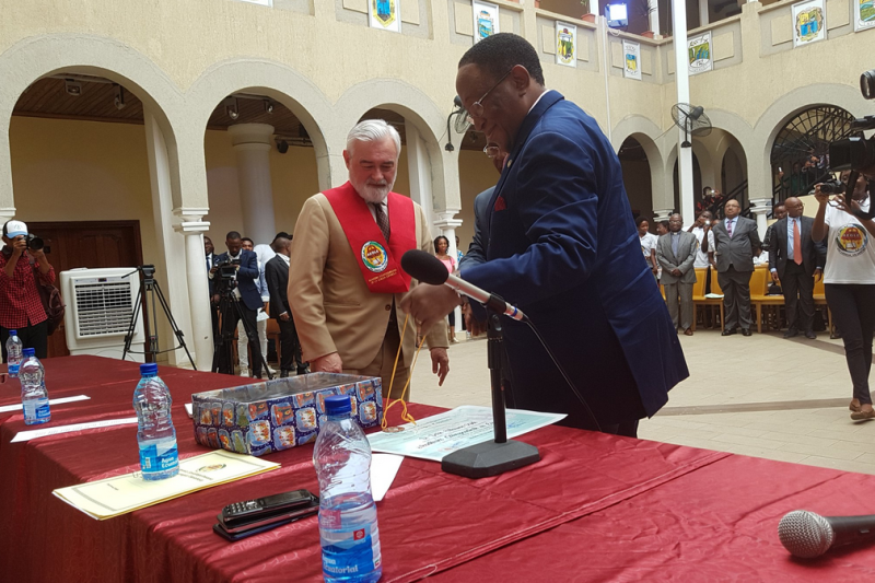 30 de Abril de 2019Darío Villanueva, exdirector de la Real Academia Española (RAE) y expresidente de la Asociación de Academias de la Lengua Española (ASALE), ha visitado la Academia Ecuatoguineana de la Lengua Española (AEGLE), con sede en Malabo, donde ha sido nombrado académico correspondiente. En un acto solemne, en el Centro Cultural Ecuatoguineano, Agustín Nze Nfumu, presidente de la corporación, le ha hecho entrega de la insignia y el diploma.
