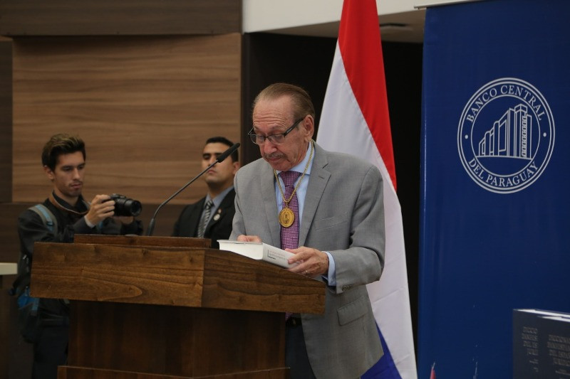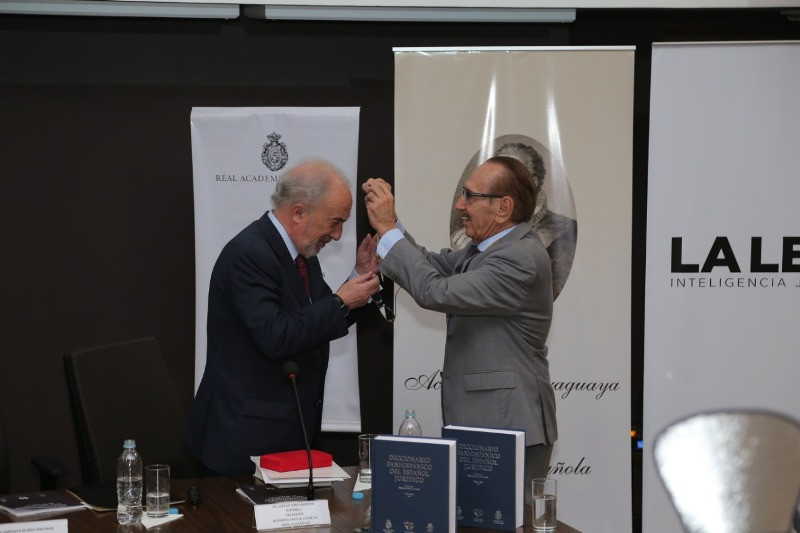 En un emotivo acto celebrado en el Instituto del Banco Central del Paraguay —en el que han participado también el presidente de la Corte Suprema de Justicia, Eugenio Jiménez Rolón, y el director de la Academia Paraguaya de la Lengua Española (APARLE), José Antonio Moreno Ruffinelli—, Santiago Muñoz Machado ha sido designado miembro correspondiente de la APARLE. Después de pronunciar unas palabras de agradecimiento, Moreno Ruffinelli ha entregado la medalla y el diploma al nuevo académico.