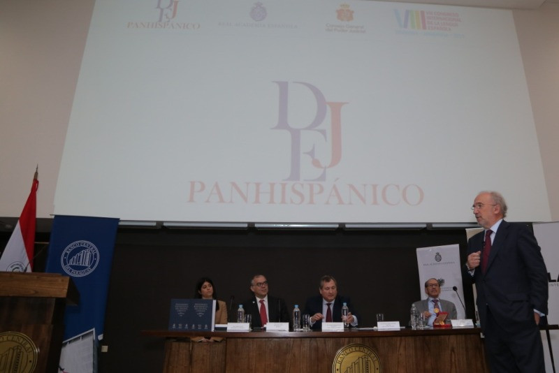 25 de Marzo de 2019El director de la Real Academia Española y presidente de la Asociación de Academias de la Lengua Española (ASALE), Santiago Muñoz Machado, ha presentado hoy en Asunción el Diccionario panhispánico del español jurídico (DPEJ), obra elaborada conjuntamente por la RAE y el Consejo General del Poder Judicial (CGPJ) y publicada por Santillana.
