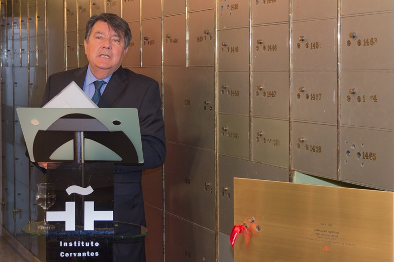 Roberto Chavero, hijo del homenajeado y presidente de la fundación dedicada a su padre, ha depositado in memoriam el legado de Atahualpa Yupanqui —una serie de tarjetas postales y cartas manuscritas— en la Caja de las Letras (número 1466) del IC, acompañado, entre otros, del director de la institución, Juan Manuel Bonet; de la secretaria de la Real Academia Española (RAE), Aurora Egido; del secretario general de la Asociación de Academias de la Lengua Española (ASALE), Francisco Javier Pérez; del ministro de Turismo de la República Argentina, Gustavo Santos; del gobernador de Córdoba (Argentina), Juan Schiaretti, y de la presidenta de la Agencia Córdoba Cultura, Nora Esther Bedano.