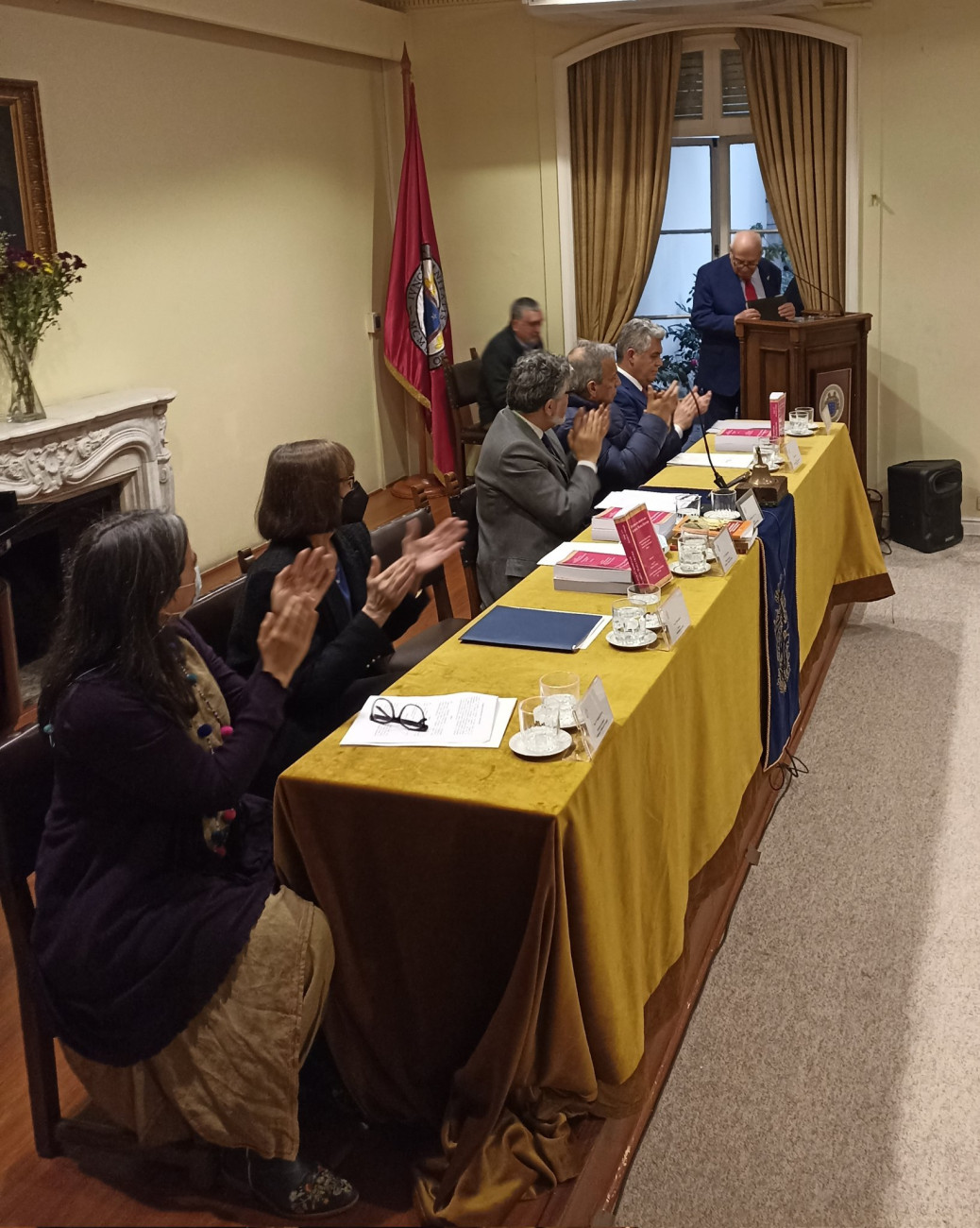 26 de Agosto de 2022La Academia Chilena de la Lengua, junto con la Universidad de Chile, rindió homenaje al lingüista Alfredo Matus, quien fuera director de la corporación durante 23 años y su actual director honorario, en un acto en el que también se presentó el anejo número 3 del Boletín de Filología, titulado Estudios en homenaje a Alfredo Matus Olivier. En más de mil páginas, divididas en dos volúmenes, reúne textos de lingüistas de alto vuelo en el ámbito hispánico como Darío Villanueva (académico de la RAE), Raquel Montenegro (directora de la Academia Guatemalteca), Paz Battaner (académica de la RAE), Irene Renau (miembro correspondiente de la Academia Chilena) y Francisco Javier Pérez (secretario general de ASALE), entre muchos otros.
