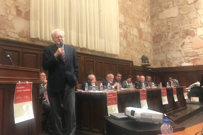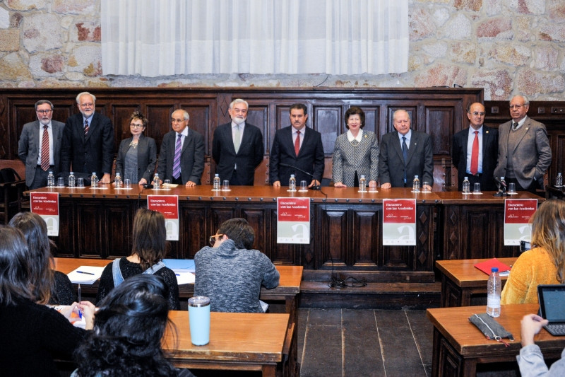 Esta tarde, en el aula Unamuno del edificio histórico de la Universidad de Salamanca (USAL), los miembros de la Comisión Interacadémica de Gramática, que estos días se reúne en Salamanca, han participado en el acto «Preguntando a las academias».
