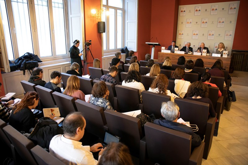La presentación de la obra se ha dividido en dos partes. Primeramente, se ha convocado una rueda de prensa dirigida a los medios de comunicación y, a continuación, se ha celebrado una mesa redonda en el salón de actos de la Academia.
