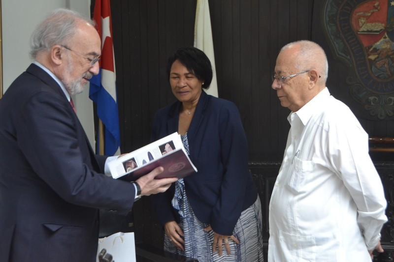 Fue recibido en el rectorado de la institución por su rectora, Miriam Nicado García. En la reunión participaron, además, el director de la academia cubana, Rogelio Rodríguez Coronel y la decana de la Facultad de Derecho de la Universidad de la Habana, Marta Moreno Cruz. La rectora hizo entrega al director de la RAE del libro El patrimonio cultural de la Universidad de la Habana, de la editorial UH.