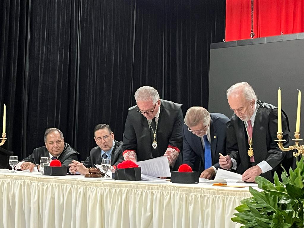 El lunes 20 la Academia Puertorriqueña de Jurisprudencia y Legislación (APJL) ha celebrado una sesión extraordinaria, dirigida por su presidente, Antonio García Padilla, para investir al presidente de la ASALE y director de la RAE como académico de honor de la corporación. Después de la semblanza del Dr. Muñoz Machado, realizada por el vicepresidente de la academia, Gustavo Gelpí, ha tenido lugar la ceremonia de imposición de la medalla por parte del presidente. A continuación, el presidente de la ASALE y director de la RAE ha pronunciado el preceptivo discurso, que ha versado sobre la relación entre derecho y lengua, al que ha respondido el presidente Antonio García Padilla en nombre de la corporación.