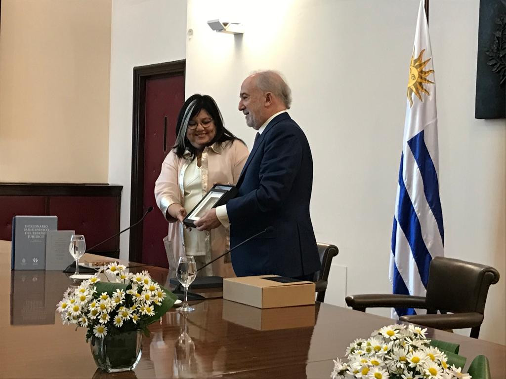 Tras la celebración de diversos encuentros estratégicos, dar a conocer en Chile la Red Panhispánica de Lenguaje Claro (Red-PHLEC), verificar la situación organizativa del IX Congreso Internacional de la Lengua Española (CILE) en Perú y presentar en ambos países la primera actualización de la edición digital del Diccionario panhispánico del español jurídico (DPEJ), Muñoz Machado ha llegado a Montevideo, donde ha sido recibido por los miembros de la Academia Nacional de Letras.
