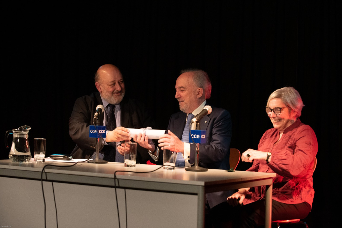Esa misma mañana, el director era distinguido como Visitante Ilustre de Montevideo, un reconocimiento otorgado por la directora de Cultura de la capital uruguaya, María Inés Obaldía y las autoridades departamentales. «Esta ciudad, aquí en el sur, que algún escritor categorizó como la ciudad de todos los vientos, lo tendrá a partir de ahora como uno de sus ilustres visitantes. Para nosotros es un honor y también un motivo de satisfacción», expresó Obaldía.